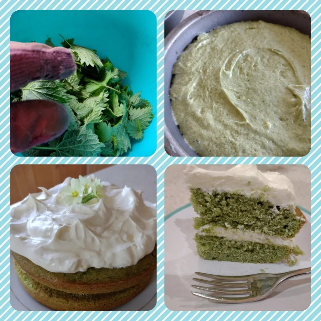 The recipe is from Kate at https://veggiedesserts.com/nettle-and-lemon-cake-with-lemon-icing-and-blackberries/