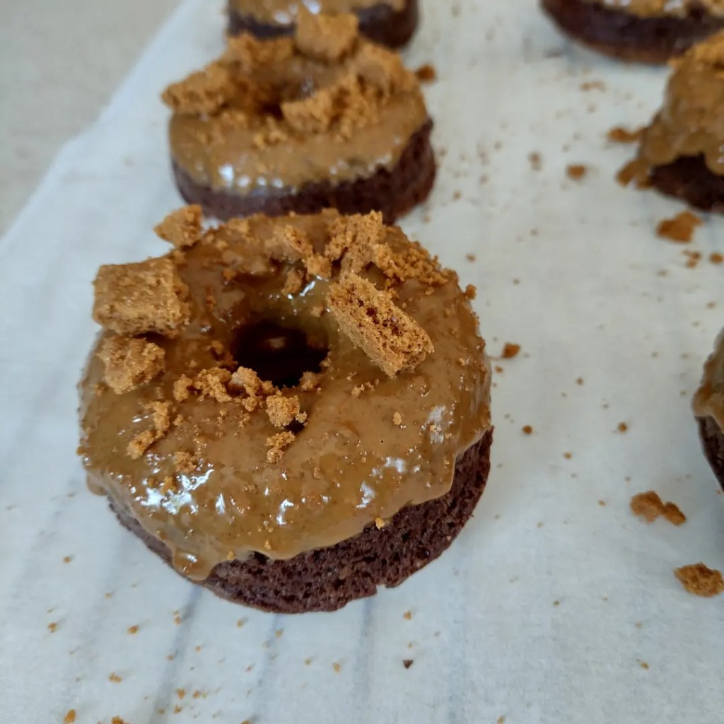 I decided I would make some and ordered some silicon donut moulds from Amazon. I love Biscoff and so I decided to make a chocolate and Biscoff bronut. I used a recipe from https://aspoonfulofvanilla.co.uk/2022/04/29/biscoff-bronuts-brownie-doughnuts/