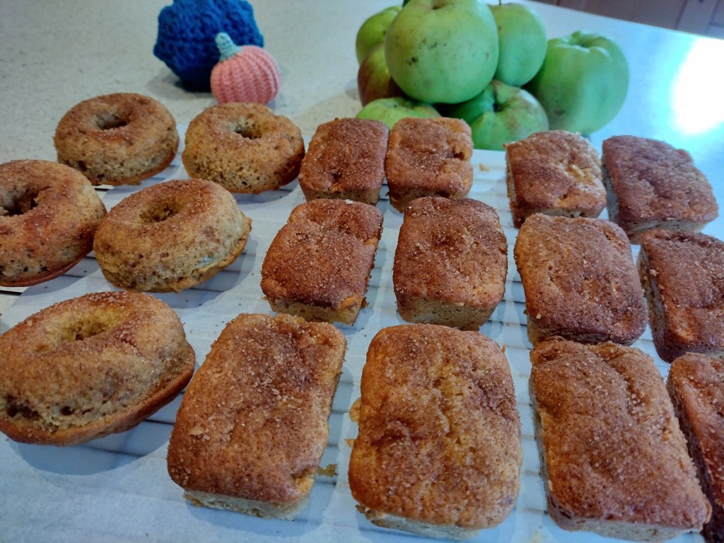 I got to pick some cooking apples from a friends tree’s this week and have been able to make cinnamon apple loaves and donuts. This was the recipe I used from Sweet Spicy Kitchen.