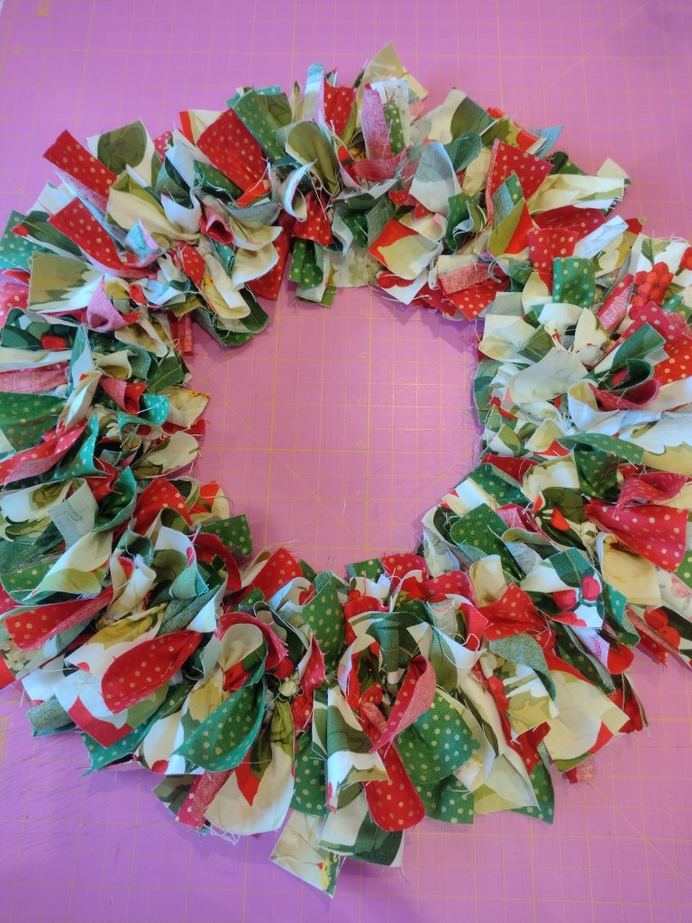 I used the rest of my day to finish my Christmas rag wreath that I discussed last blog. Here is the finished item and I have started on another one for a friend.