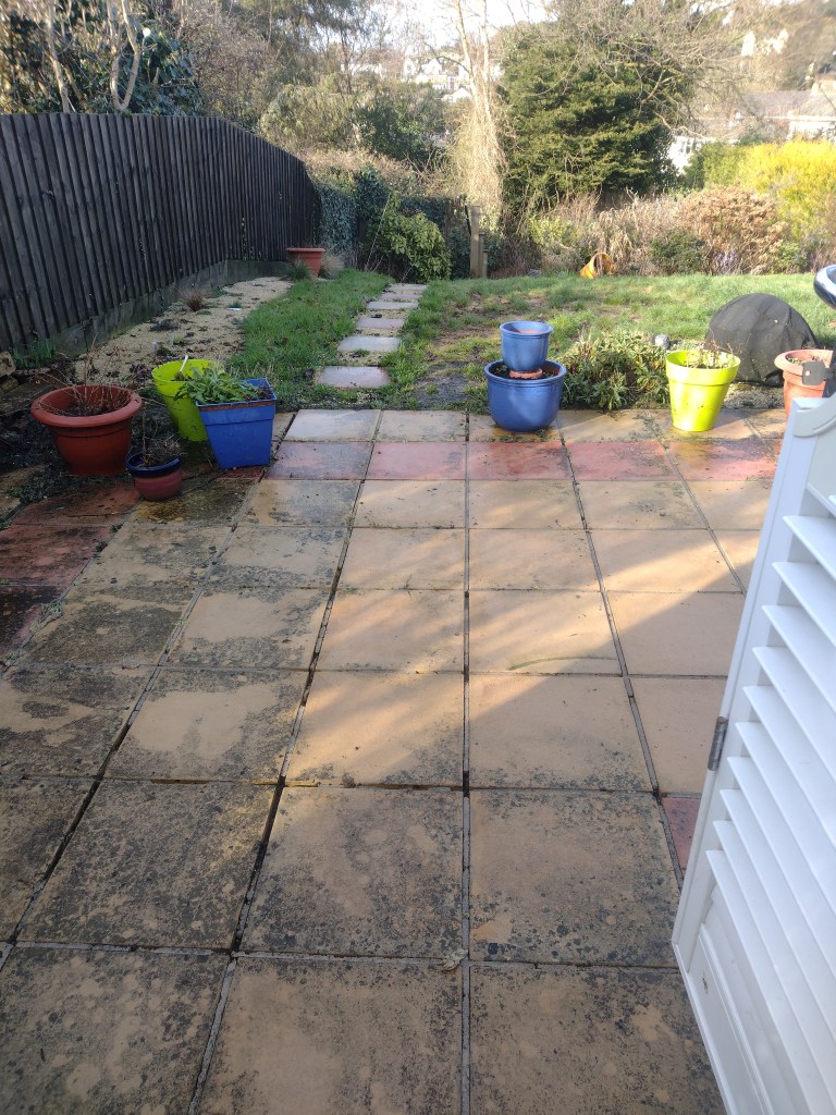 Last Sunday I started on my first chore of the garden calendar, that being, cleaning the patio and pathways. They are not perfect but I have cleared all the algae and dirt. The slabs that are in the shade the most have black spots which I will have to go over with bicarbonate of soda and vinegar.